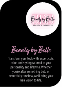 Welcome To Beauty By BelleWhere your inner beauty and outer beauty come together. We offer a variety of beauty and wellness services. Beauty by Belle Nails by Holly Reflections Reiki and Intuitive Guidance Bright beauty medspa AK Lash Studio Red light Therapy Salon Products Join the Team Request an Appointment today Request Appointment
